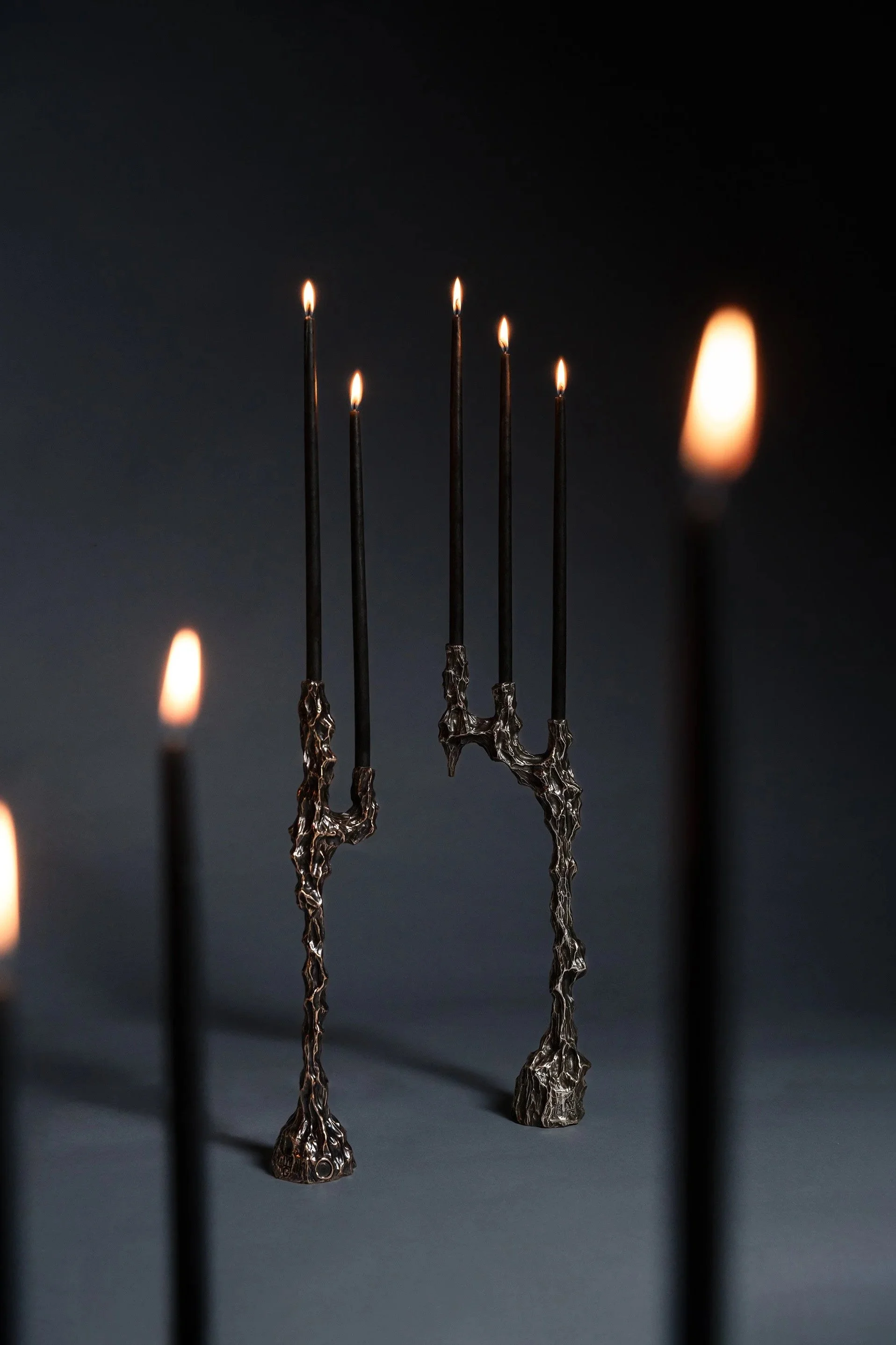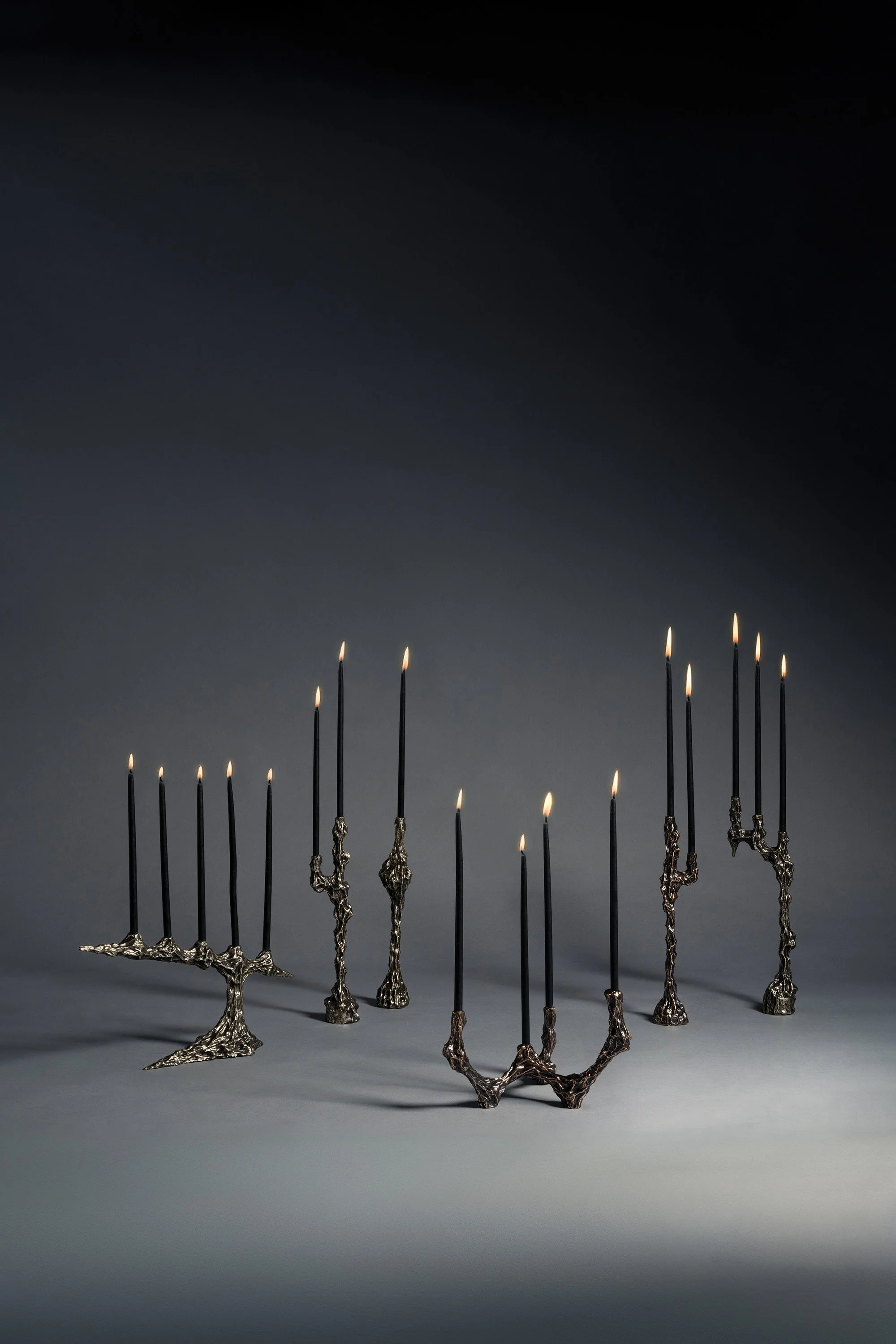 • Candleholders in different heights and configurations, from single stems to branching forms that hold multiple candles
