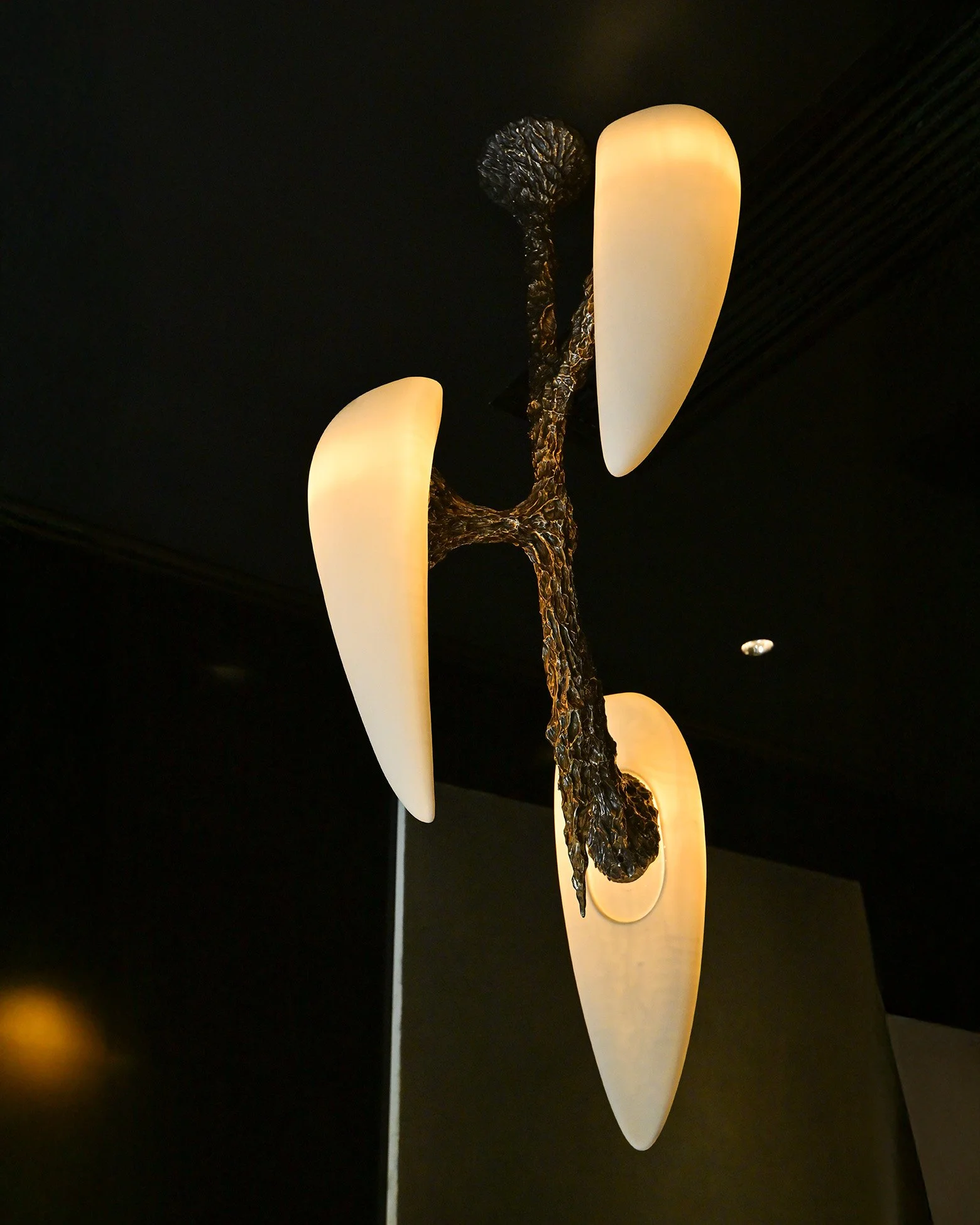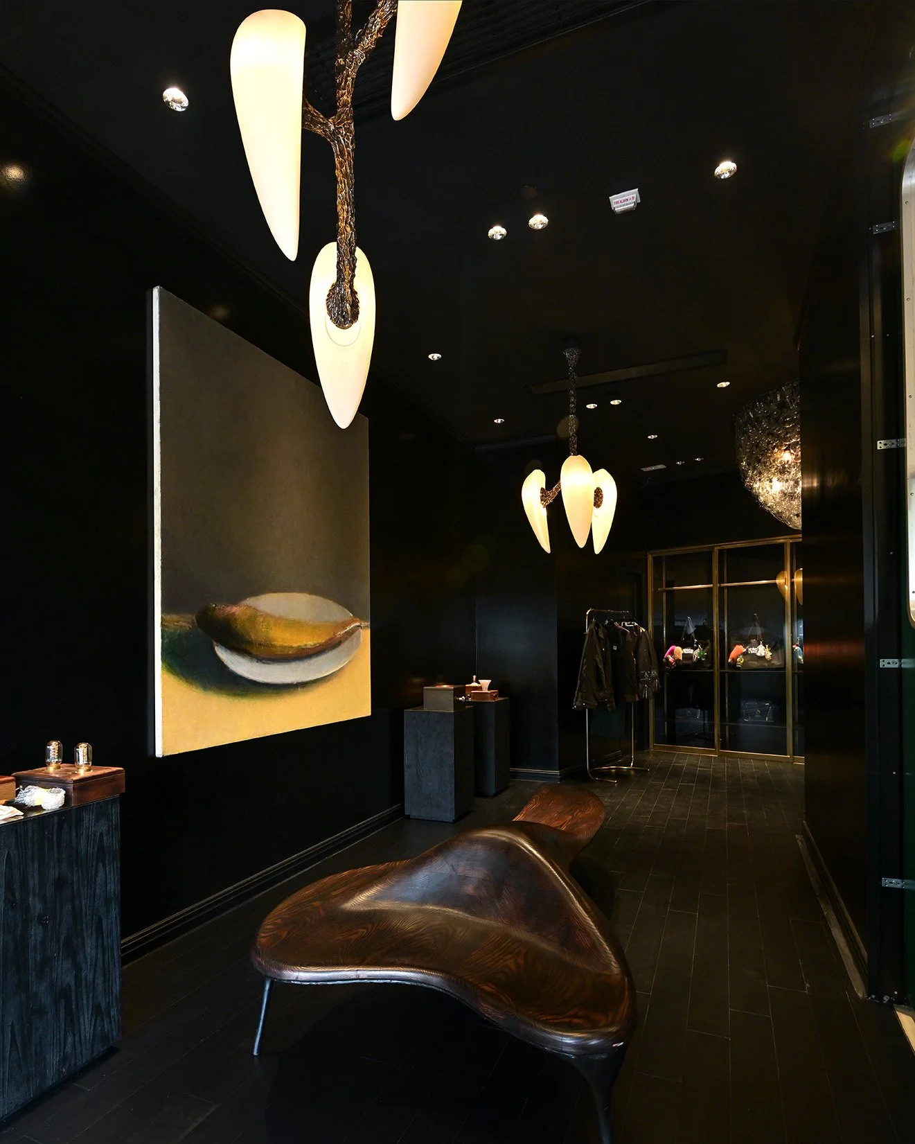 For this new space, several pieces were introduced, including LV-426 Horizontal, LV-426 Balanced, and LV-426 Vertical 3 Diffusers. Each one inhabits the store with a quiet presence, shaping the atmosphere through a subtle interplay of light, structure, and shadow. Suspended or anchored, they create moments of tension and stillness, guiding the way the space is perceived and experienced.